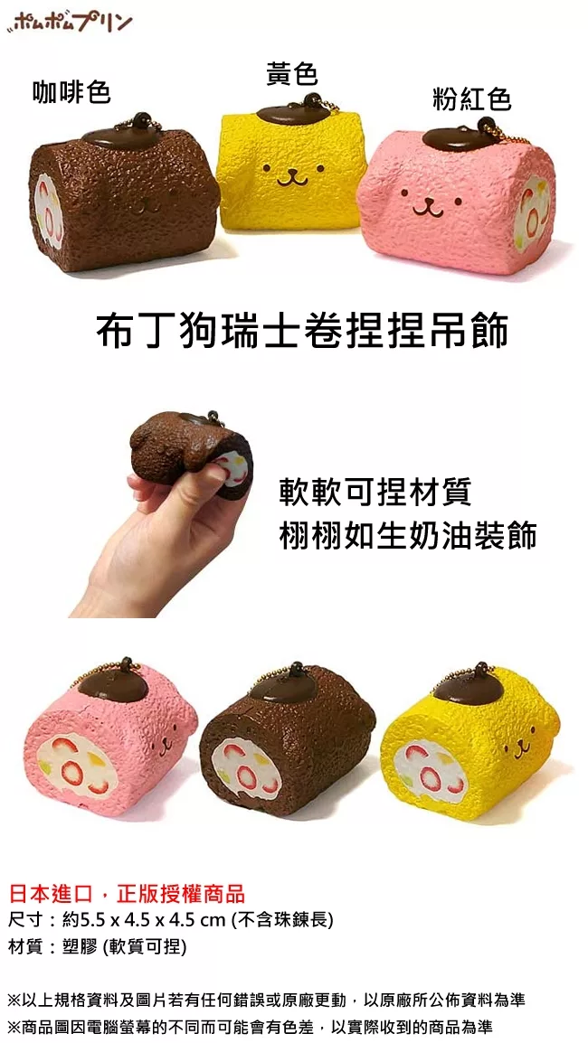 像我上次在博客來入手的【日本進口正版】布丁狗 瑞士捲 捏捏樂 吊飾 Pom Purin 三麗鷗 -粉紅色款